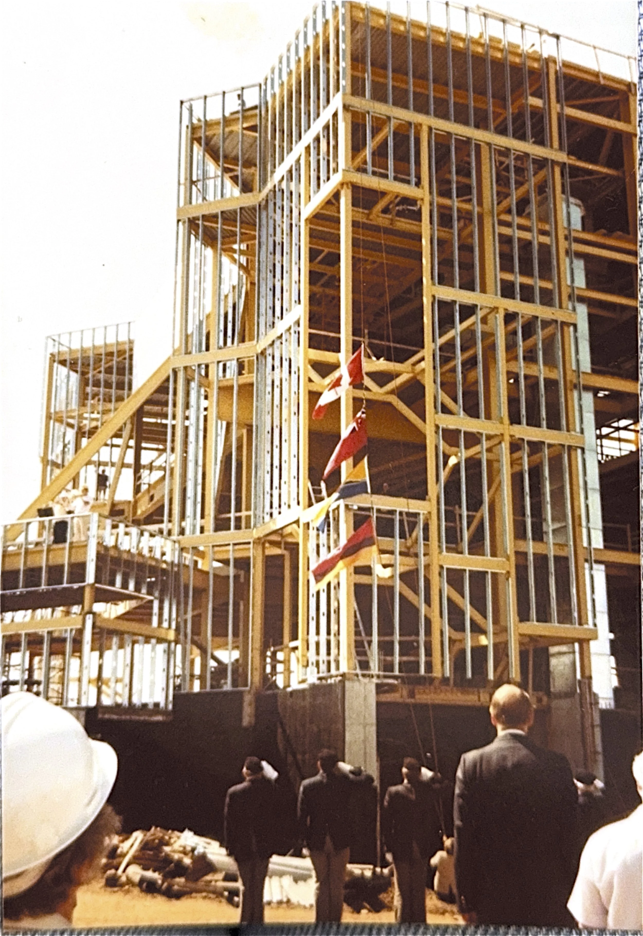 Ted Vaillant holds a photograph of the topping-off ceremony that originally appeared in The Chronicle Journal